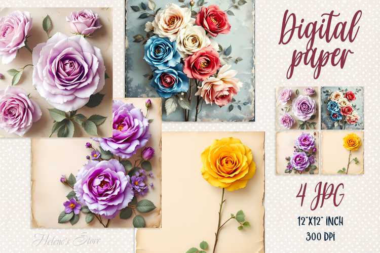 Digital Paper Sublimation Design Wallpaper Digital Paper Pack Craft Supplies Spring Scrapbook Paper Springtime Mood Retro Flowers Papers Set Digital Scrapbooking Natural Flowers Pattern Blank Template Floral Illustration Wallpaper Pack Craft Supplies Vintage Scrapbook Old Backgrounds Set 3d Drawing Garden Flowers Bouquet Delicate Tea Roses Pink Flower Picture Jpg Cute Lilac Yellow Rose Pastel Designs Backdrop