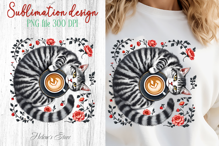 Similar Design Products to Coffee & cat in flowers sublimation design| Cute cat clipart