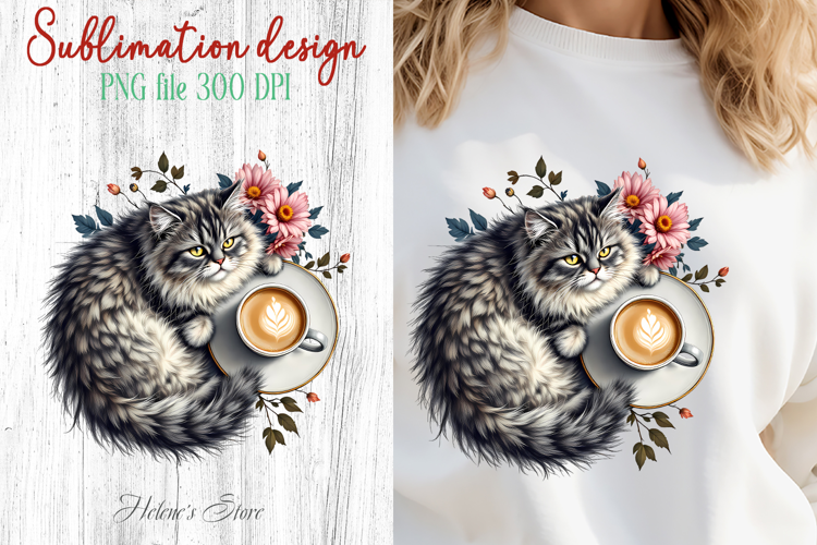 Similar Design Products to Coffee & cat in flowers sublimation design| Cute cat clipart