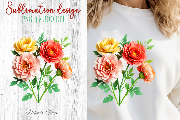 Carnations flowers sublimation design png | Floral clipart example image 1