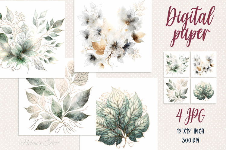 Digital Paper Sublimation Design Retro Flowers Papers Set Digital Scrapbooking Floral Illustration Wallpaper Pack Craft Supplies Cute Pastel Designs Backdrop Natural Plant Pattern Blank Template Jpg Vintage Scrapbook Paper Old Backgrounds Set Watercolor Drawing Garden Flowers Fall Leaves Scrap Booking Scrapbooking Graphics Light White Gold Gray Brown Leaf Silhouette Delicate Green Autumn Leaf Patterns Design