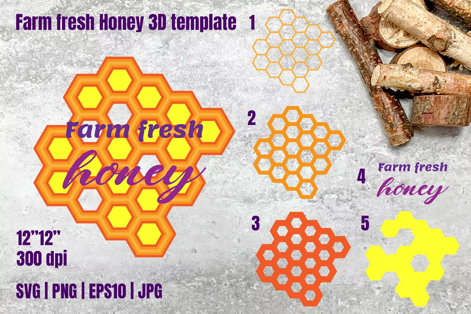 Farm fresh Honey SVG layered 3D template for Cut.