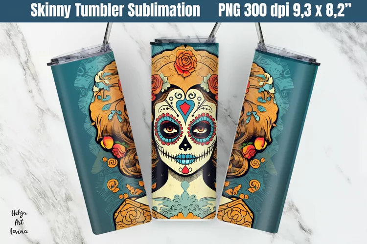 Day Of The Dead Cinco De Mayo Halloween Tumbler Tumbler Sublimation Png Tumbler Wrap Design 20 Oz Skinny Tumbler Sublimation Gothic Tumbler Catherine Skull