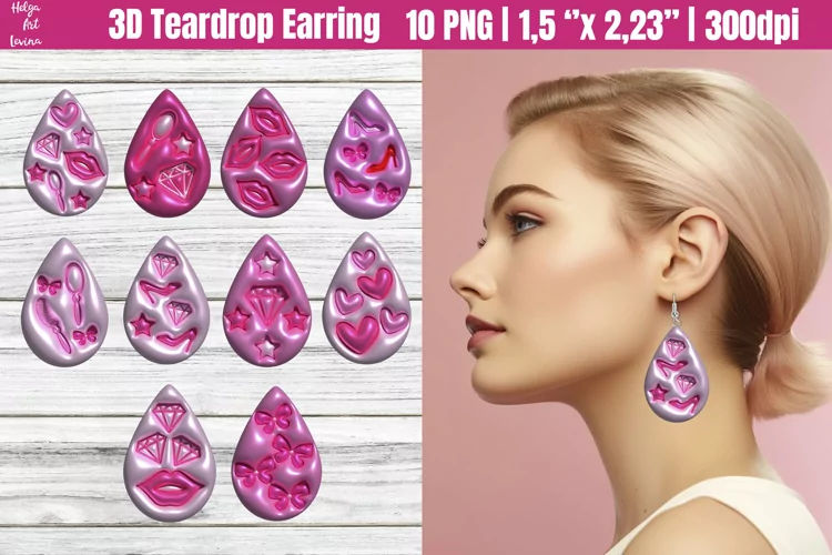 3D Pink Teardrop earring PNG Bundle example image 1