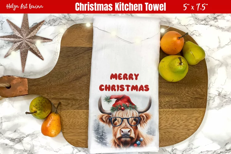 Kitchen Towel Design Christmas Farm Animal Christmas Kitchen Towel Cow Christmas Highland Cow Png Kitchen Towel Sublimation Funny Highland Cow Christmas Kitchen Towel Sublimation Highland Cow Christmas Farm Animal Cow highland