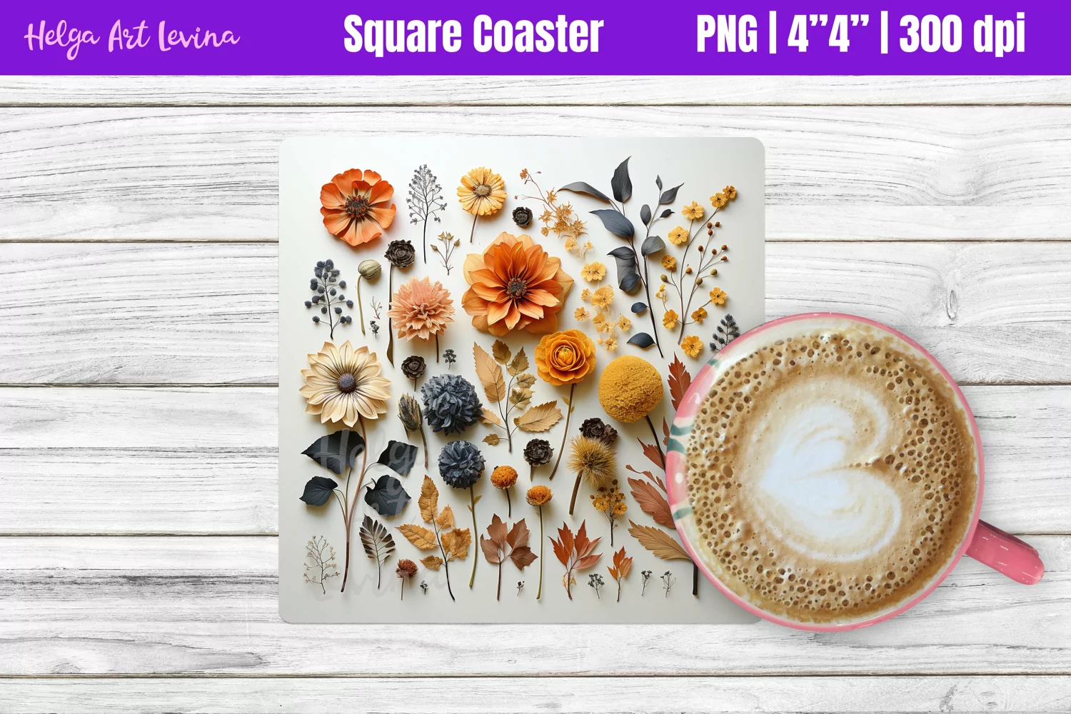 Similar Design Products to Square Coaster Sublimation | Herbarium Flowers PNG