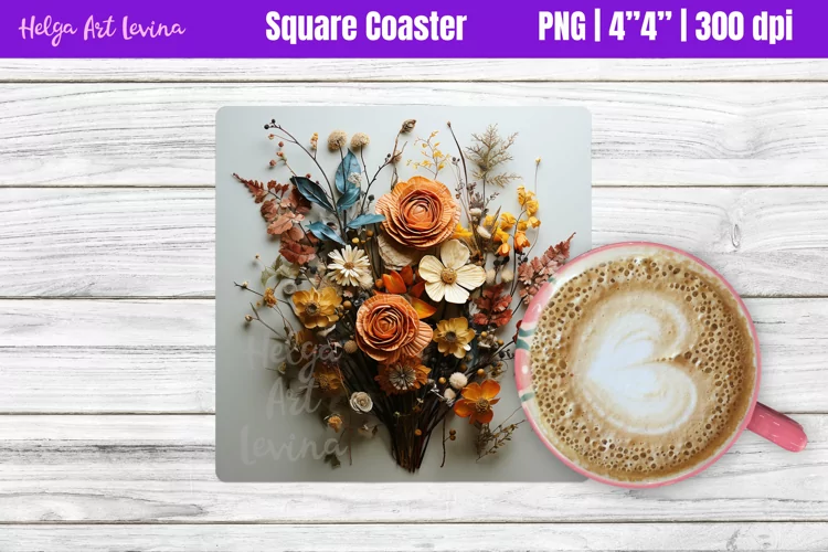 3d Flowers Square Coaster Designs Square Coaster Sublimation Square Coaster Png Sublimation Square Coaster Square Coasters Png Flowers Coaster Sublimation Herbarium Flowers Png