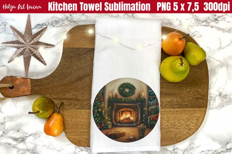 Towel Kitchen Towel Design Christmas Kitchen Towel Fireplace Sublimation Kitchen Towel Sublimation Christmas Round Design Christmas Kitchen Towel Sublimation