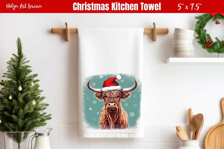Christmas Kitchen Towel Sublimation | Cow highland PNG