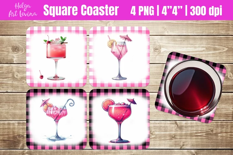 Pink Cocktail Cocktail Sublimation Square Coasters Square Coaster Designs Square Coaster Sublimation Sublimation Square Coaster Square Coasters Png Kitchen Coasters Cocktail Square Coasters Cocktail Coasters