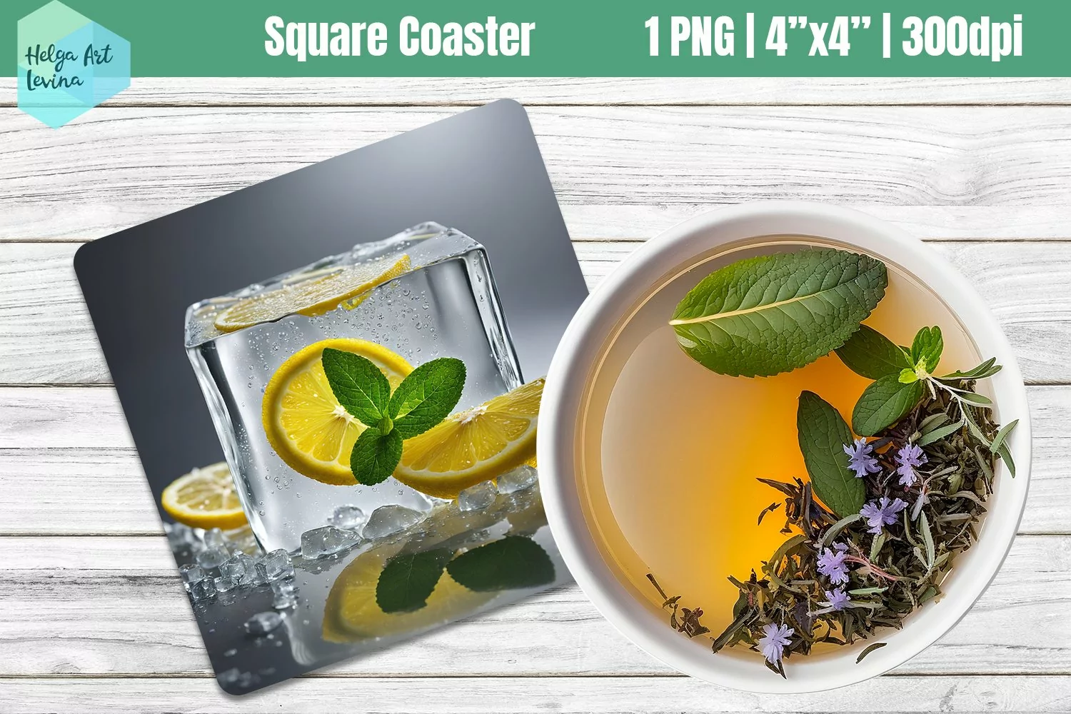 Similar Design Products to Square Coasters Sublimation | Lemon in ice