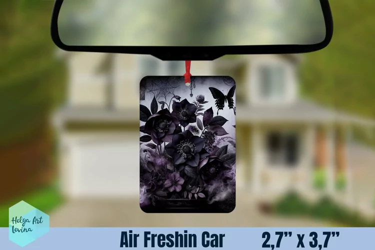 Air Freshener Car | Black flowers sublimation example image 1
