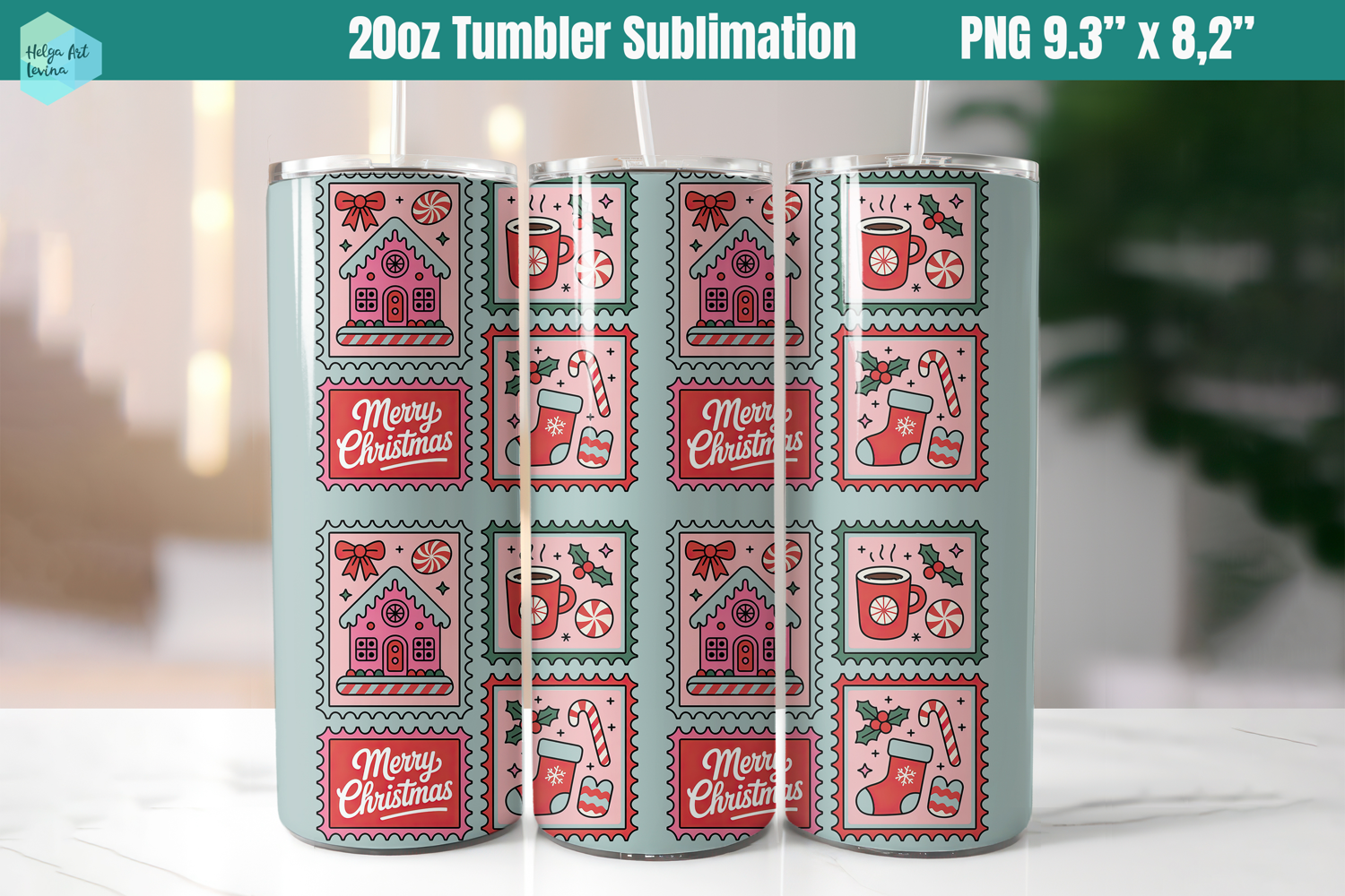 Christmas postage stamp 20 OZ Skinny Tumbler Sublimation example image 1