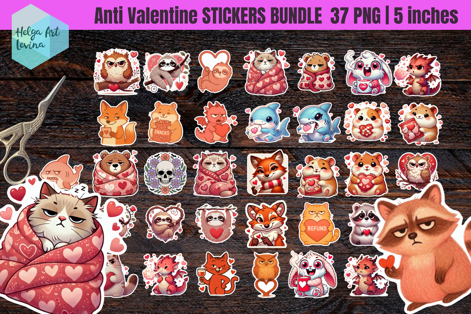 Anti Valentine Bundle, Stickers printable PNG example image 1