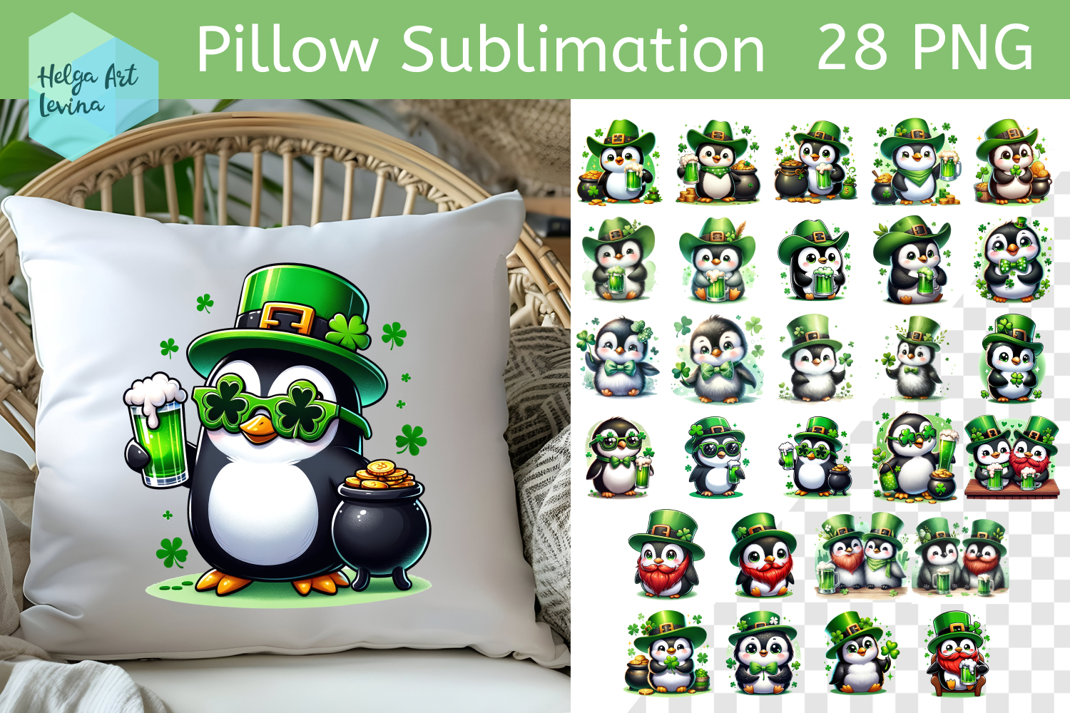 Similar Design Products to St. Patricks Day Sublimation, Pillow Penguin PNG