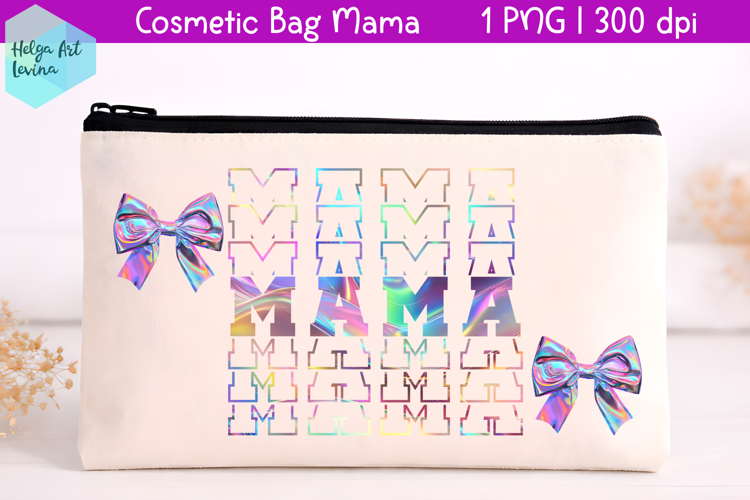 Mother's Day Design Mother's Day Sublimation Mothers Day Sublimation Mama Sublimation Png Metal Texture Png Mother's Day Makeup Bag Cosmetic Bag Mama Mama Makeup Bag Png Holographic Mama Bow Holographic Sublimation