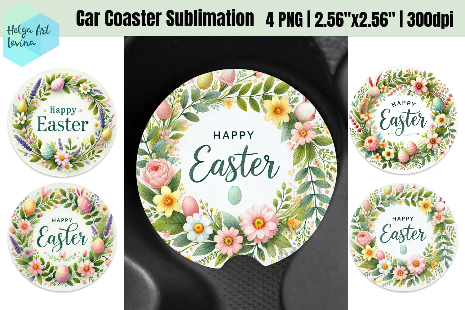 Spring Easter Car Coaster Sublimation example image 1