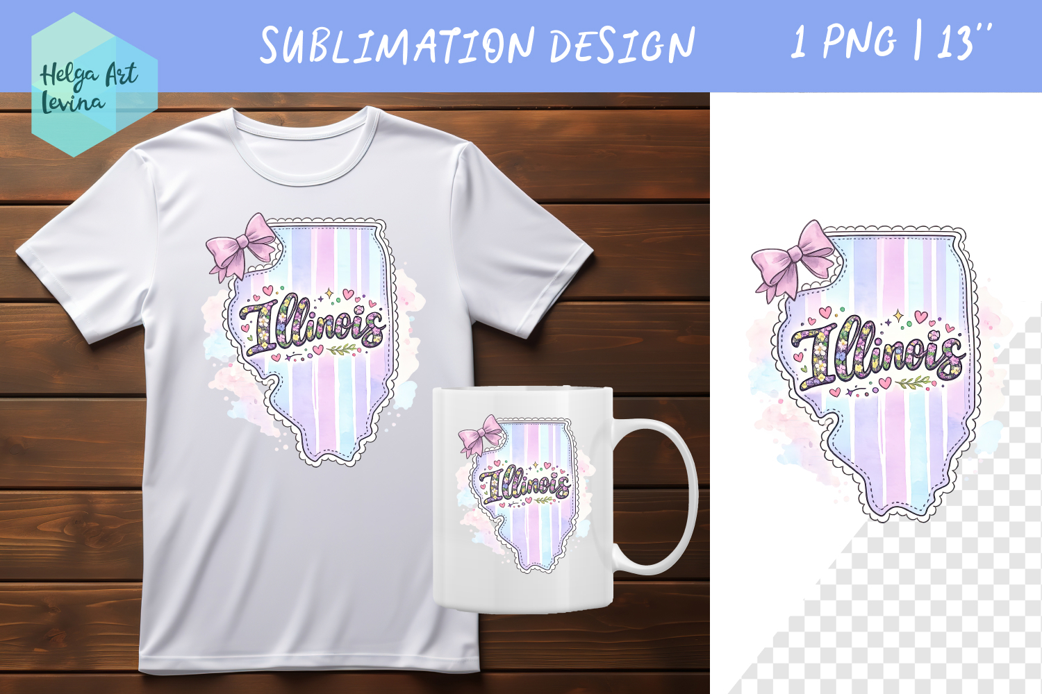 Floral state map sublimation. Clipart illinois example image 1