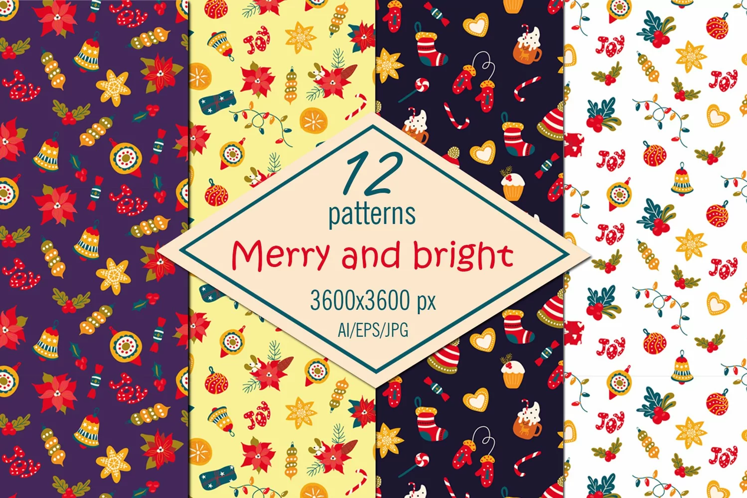 Similar Design Products to Merry and bright digital paper /seamless patterns