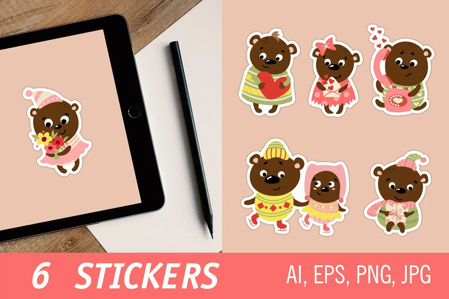 Vector Illustration Stickers Printable Stickers Cute Stickers Valentines Stickers Stickers For Kids Animals Stickers Bears Stickers Bears Valentines Stickers