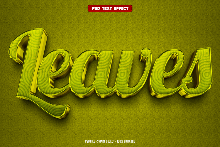 Modern Text Gold Style Design Nature Green Shiny Leaves Effect