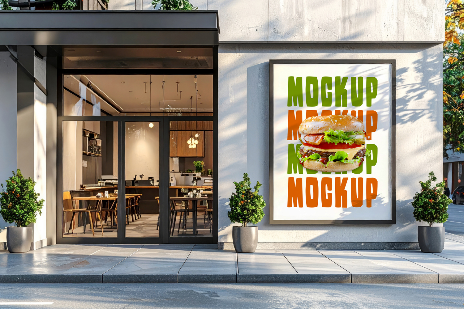 Billboard mockup of restaurant front view