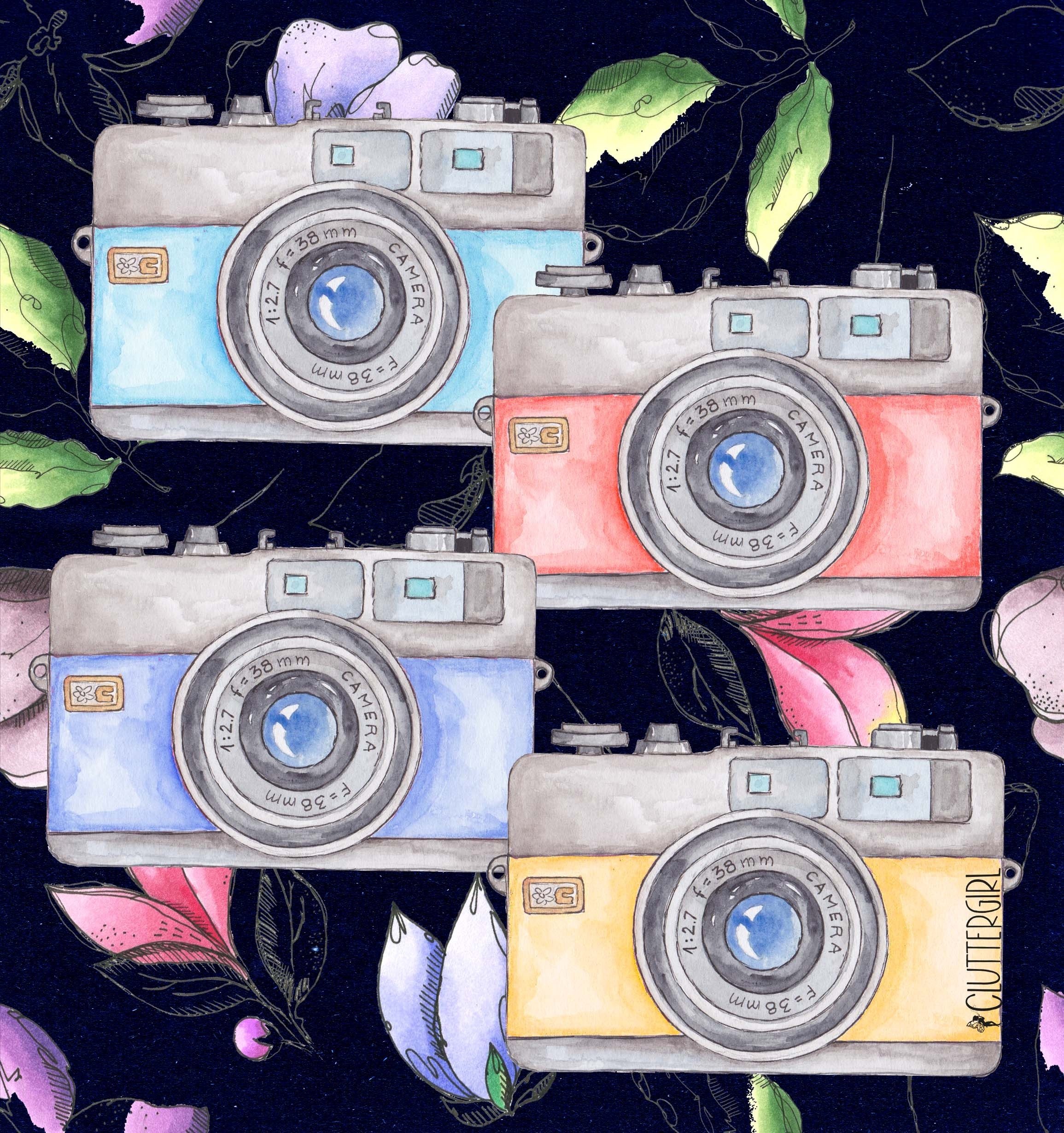Illustration Cameras Clipart Old Cameras Vintage Cameras Watercolor Cameras