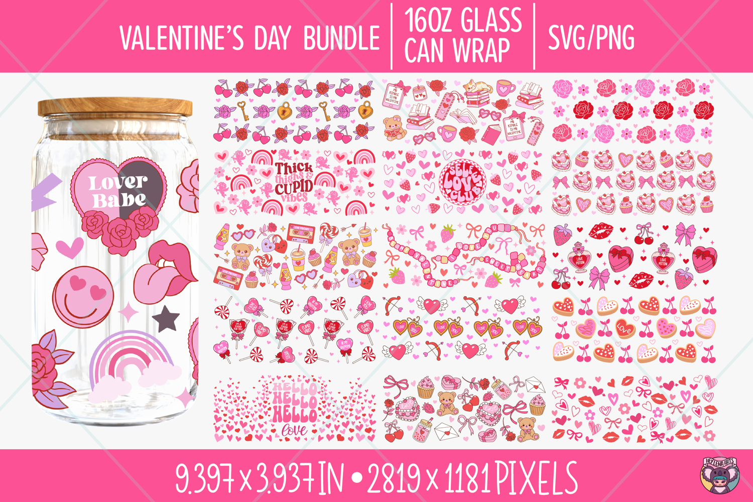 Valentines 16oz Libbey Glass Can Wrap Bundle SVG PNG example image 1