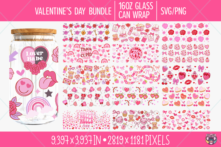 Valentines 16oz Libbey Glass Can Wrap Bundle SVG PNG