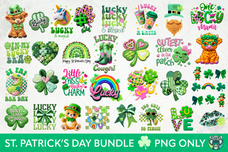 Hey lucky you ☘️ I made a super fun St. Patrick’s Day bundle filled with faux yarn textures, embroidery details, and fluffy faux fur elements. It’s a fancy, playful mix of shamrocks, lucky sayings, bows, and cute holiday vibes. PNG files on a transparent background, ready for stickers, cards, crafts, and more. Hope you love it!