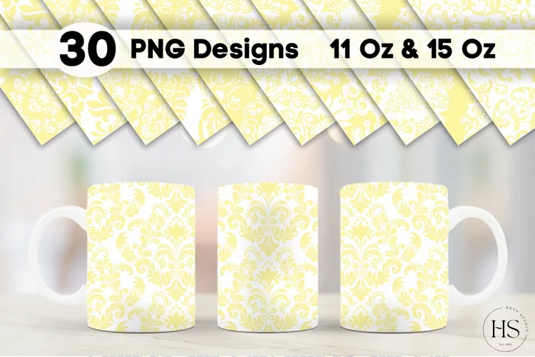 Similar Design Products to 30 Yellow Damask Pattern Mug Sublimation PNG Bundle