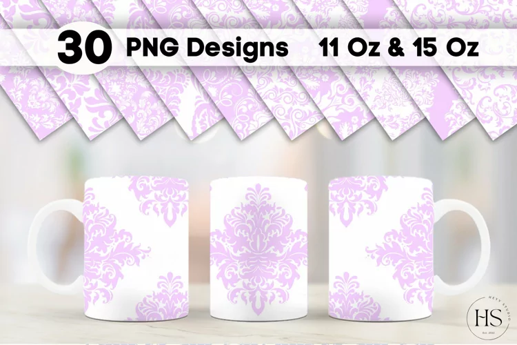30 Damask Pattern Mug Sublimation PNG Bundle