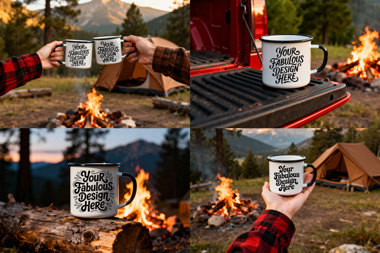 Camping Mugs Mockup Set for SVG, Sublimation, Clipart, More