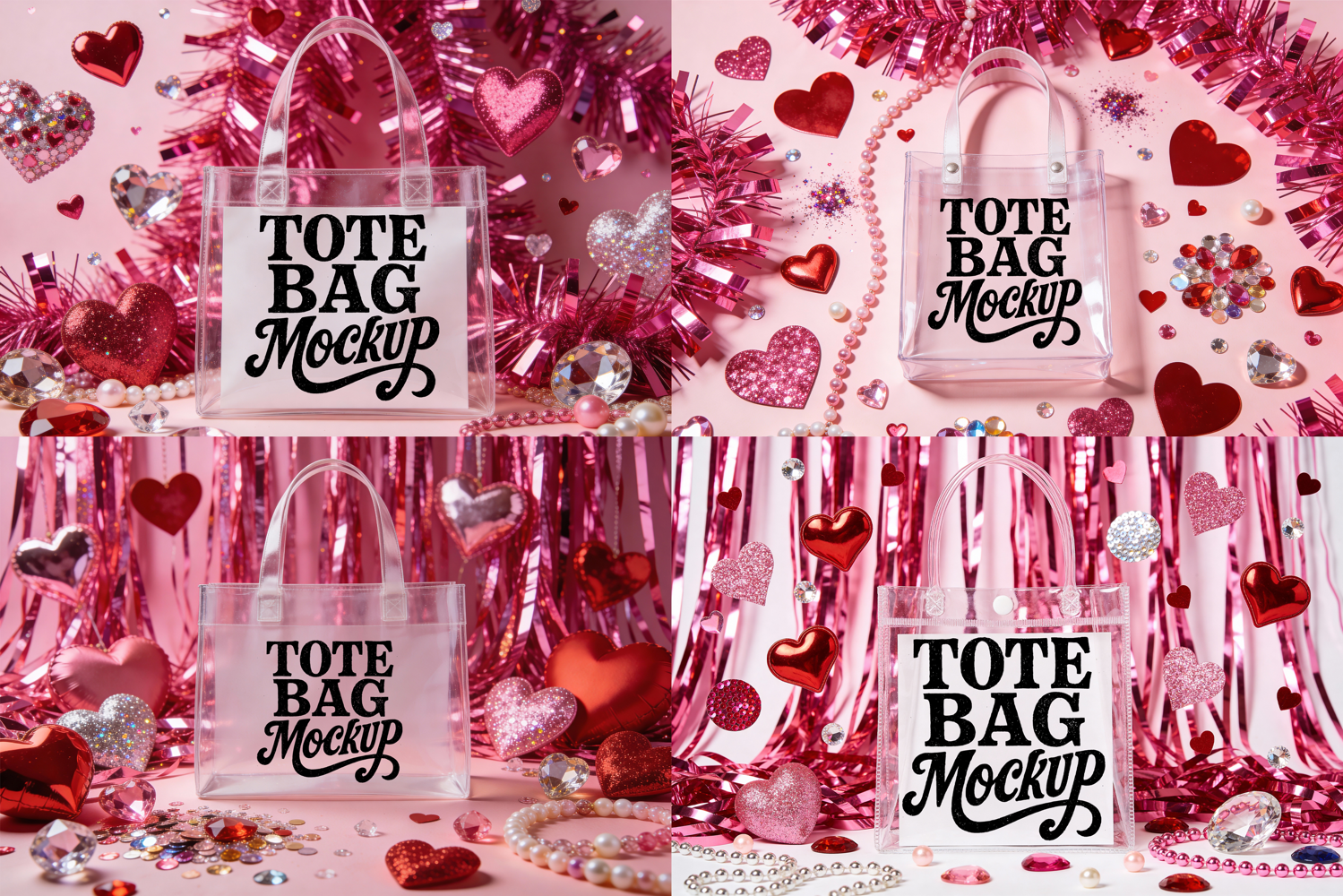 Similar Design Products to Valentine's Day Clear Tote Bag PSD JPG Mockup Set