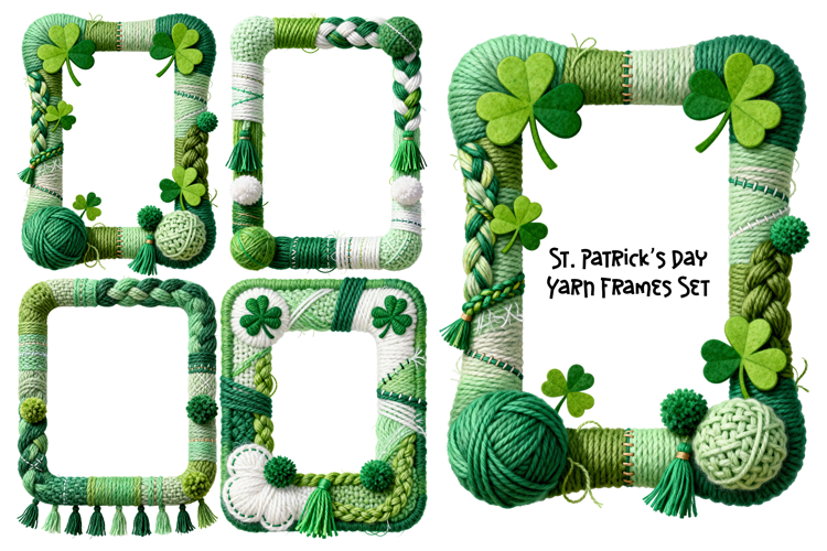 This set features four charming yarn frames, perfectly designed for a festive St. Patrick's Day theme.