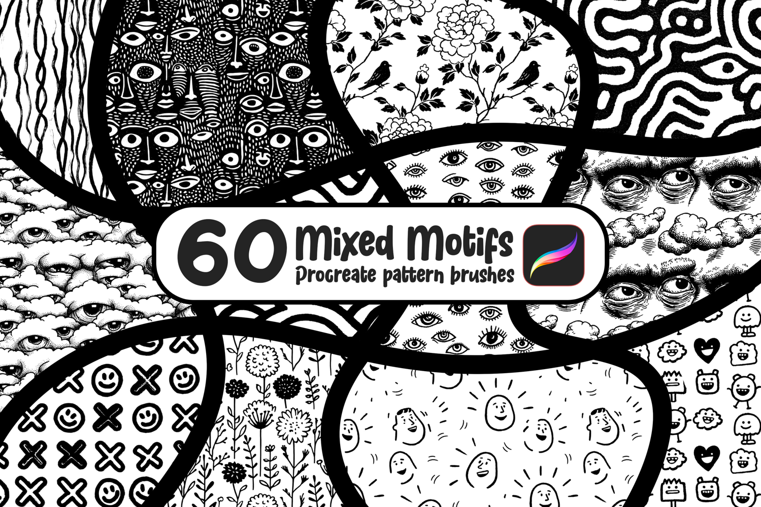 Mixed Motifs - 60 Procreate Seamless Tiling Pattern Brushes