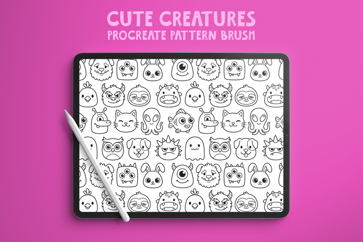 Create fun, seamless patterns in seconds with this Cute Creatures Procreate Pattern Brush — perfect for coloring books, surface design, and print-ready projects.
