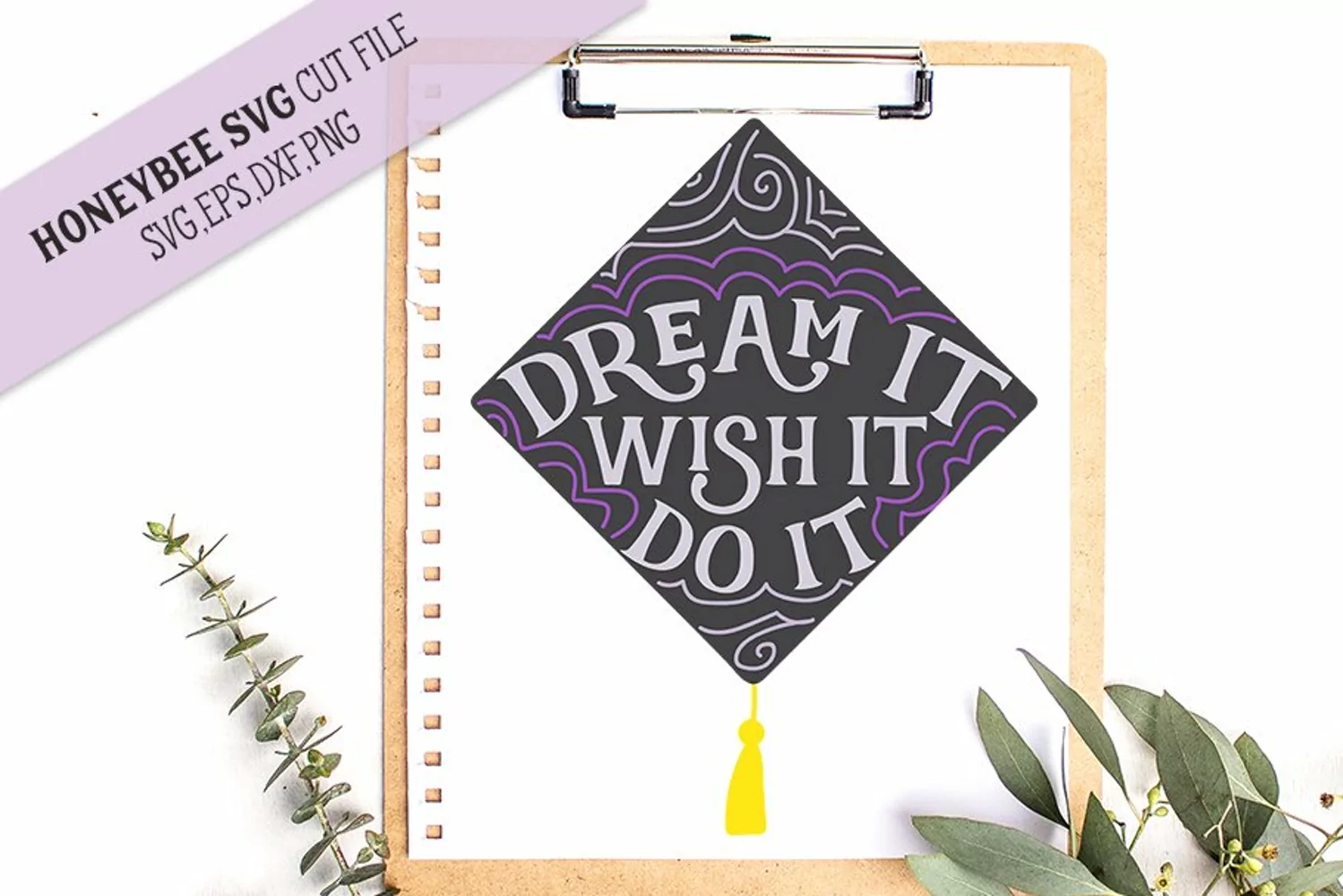 This cute Dream It Wish It  SVG Cut File would be a perfect gift for this graduation season! This is an SVG, DXF, EPS, PNG and JPEG digital download cutting file, which can be imported into a number of paper crafting programs.