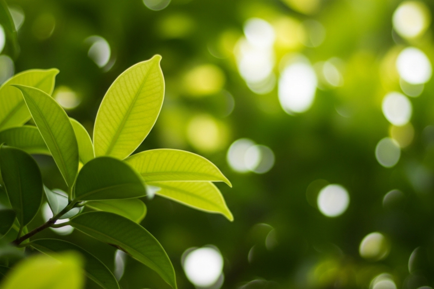 Nature Green Neon Leaves Lights Foliage Cityscape Night Blurred Background Close-up