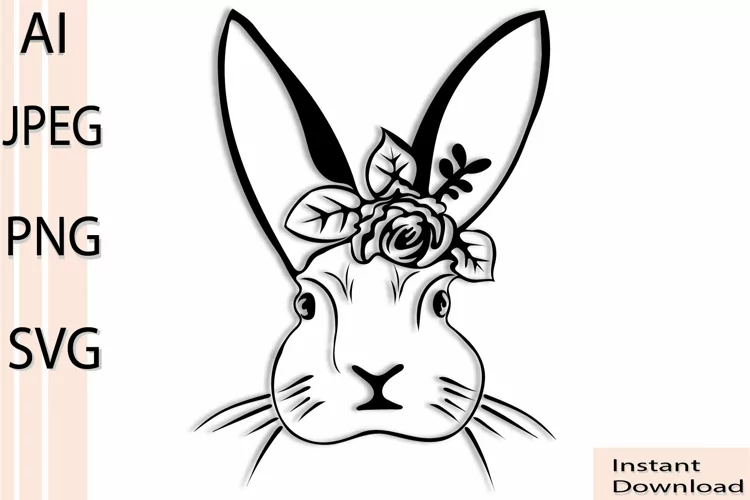 Clip Art Transfer Paper Cut Printable File Flower Bunny Svg Vector Bunny Illusion Svg Vinil Sticker Silhoette Cut Digital Files For Cnc