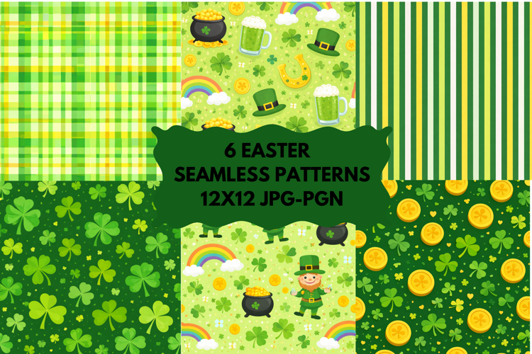 St Patrick Seamless Patterns Bundle 6 JPG PNG 12x12