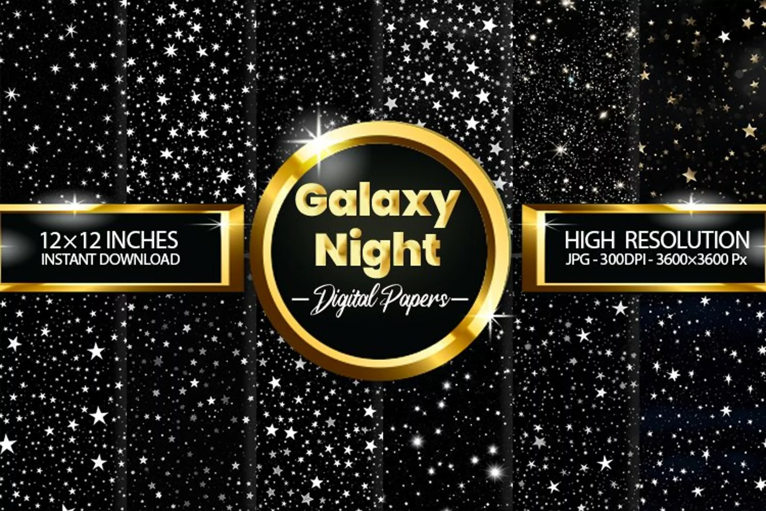 Galaxy Night Stars Digital Papers, Galaxy Pattern example image 1