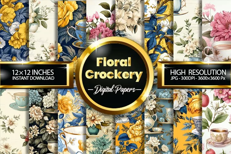 Floral Crockery Digital Paper is perfect for Gift Wrapping, Promotional Items, Invitations, Wallpaper, Greeting Cards, Planners, Journals, Scrapbook, Notebook Covers, T-Shirts, Mugs, Tumbler, Puzzles, Crafting and much more. This Digital Paper is a popular choice for people on the go.