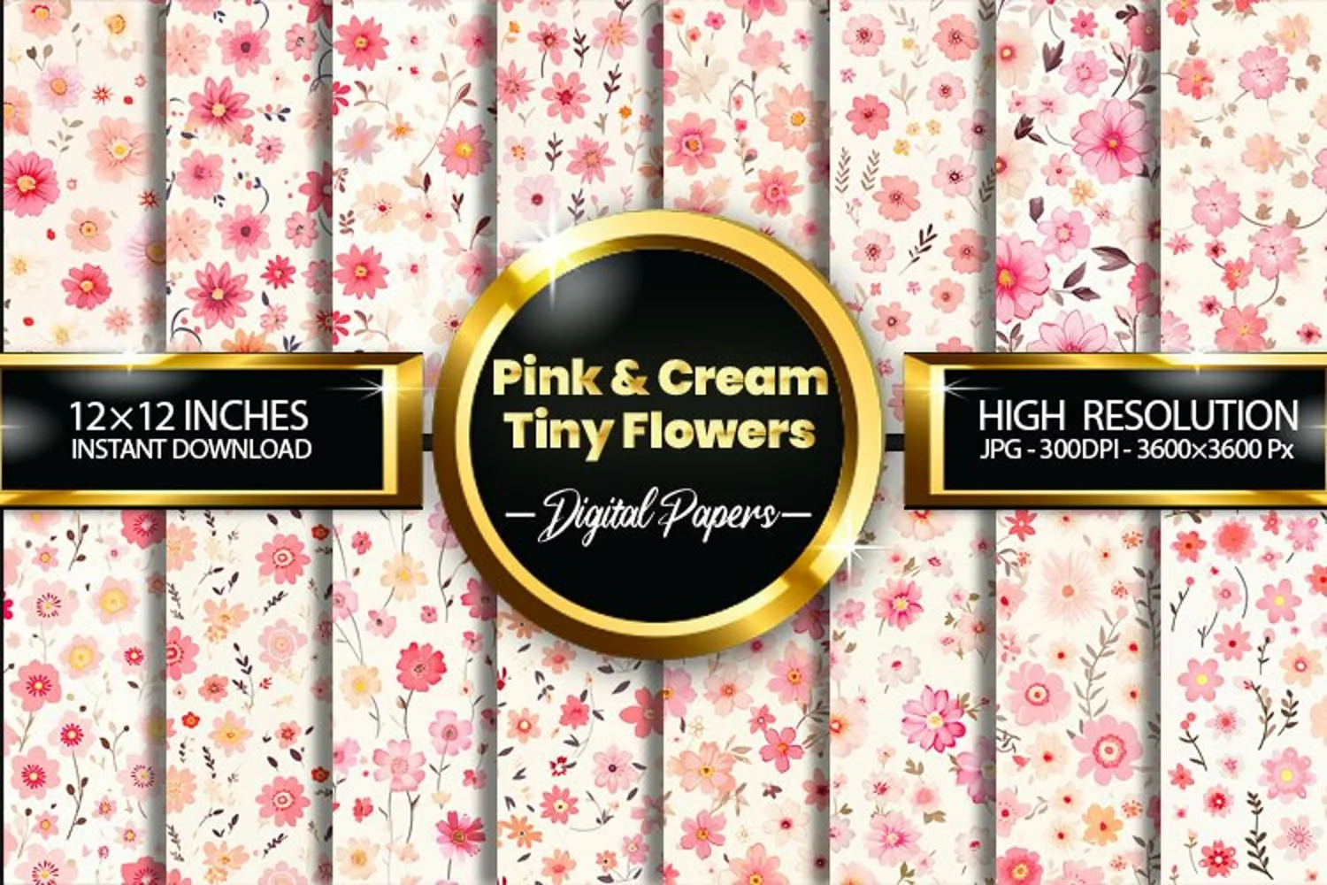 Similar Design Products to Pink and Cream Tiny Flowers Digital Papers, Flowers Pattern