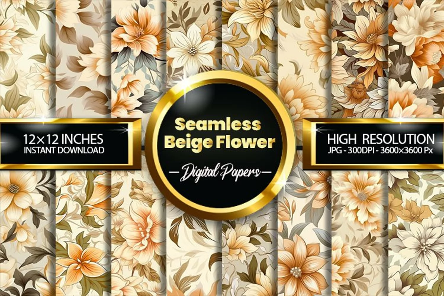 Seamless Beige Flower Digital Papers, Flower Pattern example image 1