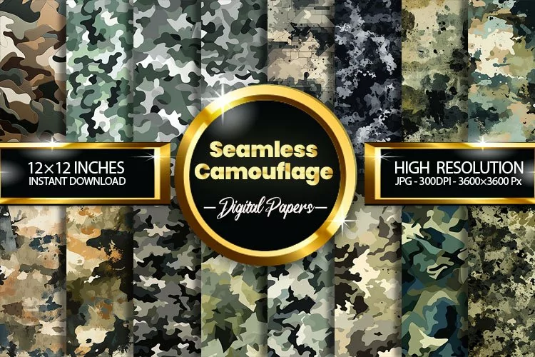 Seamless Camouflage Digital Papers is perfect for Gift Wrapping, Promotional Items, Invitations, Wallpaper, Greeting Cards, Planners, Journals, Scrapbook, Notebook Covers, T-Shirts, Mugs, Tumbler, Puzzles, Crafting and much more. This Digital Paper is a popular choice for people on the go.