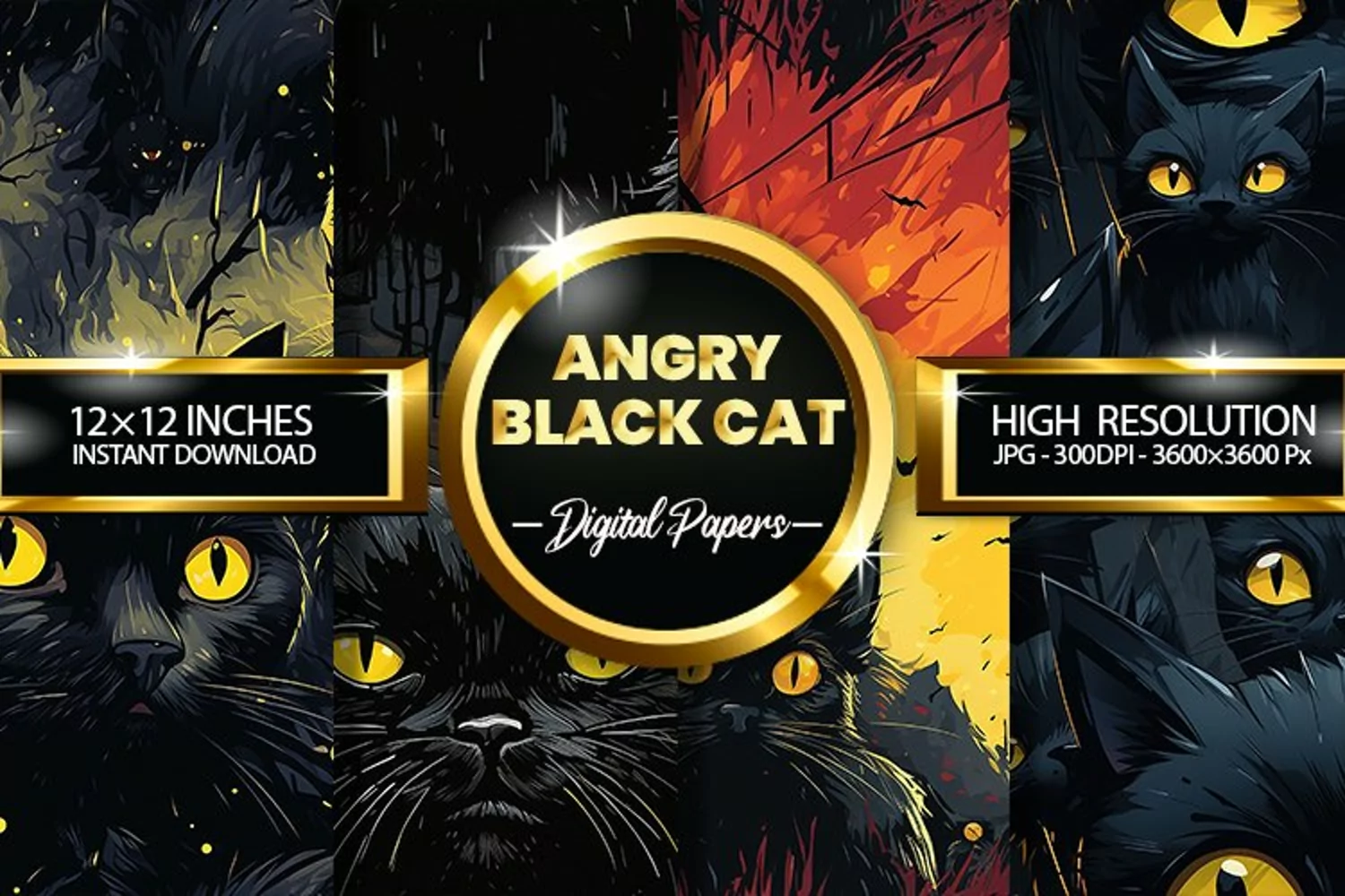 Similar Design Products to Angry Black Cat Digital Papers - 04 Variations