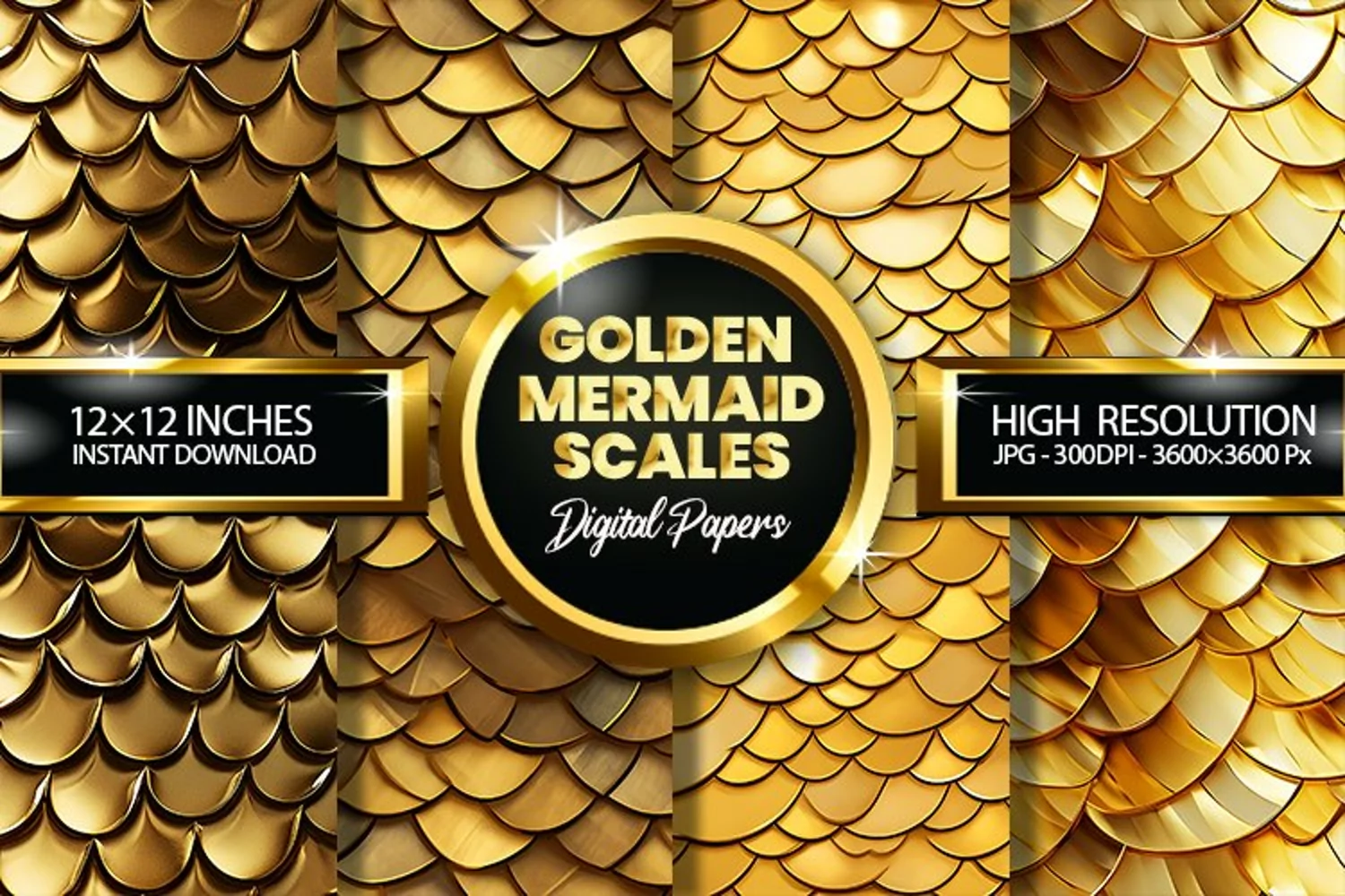 Golden Mermaid Scales Digital Papers is perfect for Gift Wrapping, Promotional Items, Invitations, Wallpaper, Greeting Cards, Planners, Journals, Scrapbook, Notebook Covers, T-Shirts, Mugs, Tumbler, Puzzles, Crafting and much more. This Digital Paper is a popular choice for people on the go.