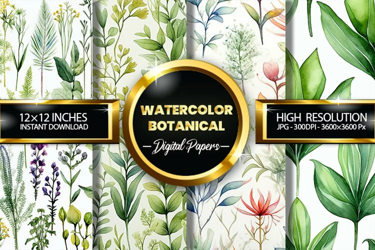 Watercolor Botanical Digital Papers - 04 Variations example image 1