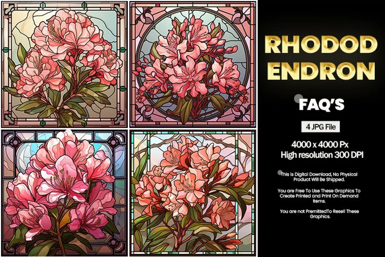 Stained Glass Rhododendron Square Coaster - 04 Variations